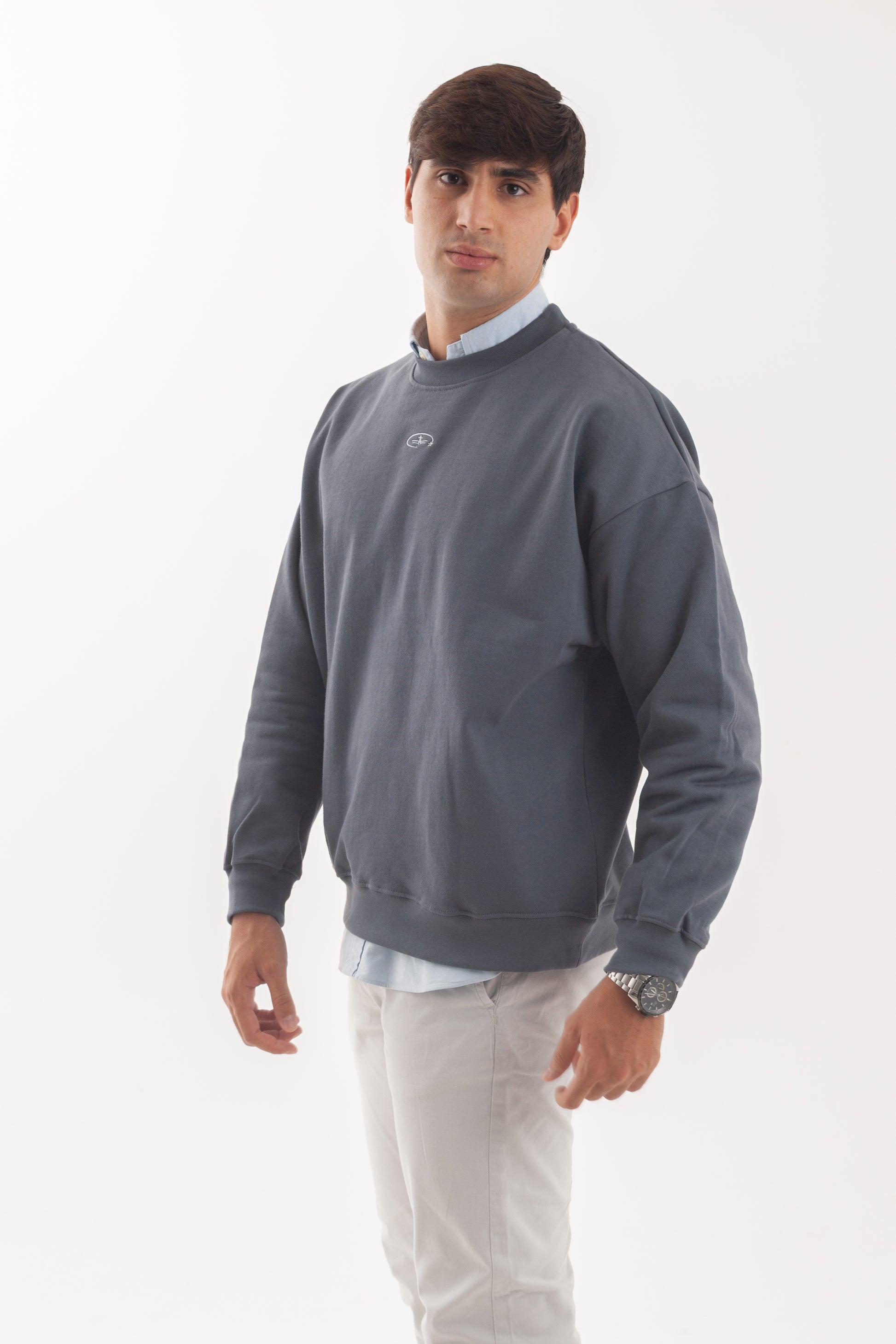 Descripción: Sudadera color gris oscuro, confeccionada en 100% algodón de alta calidad con un gramaje de 450 GSM